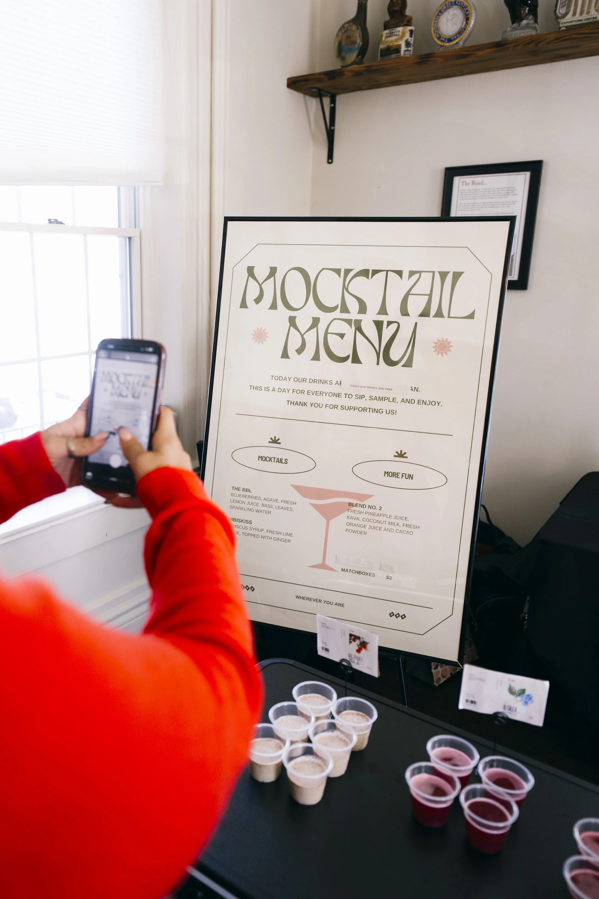 A stylish mocktail bar with custom drink menus.